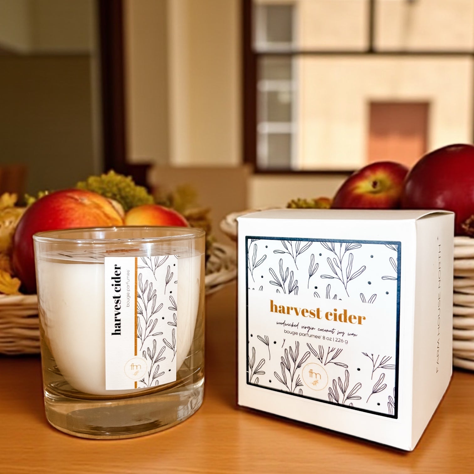 Harvest Cider is expertly crafted to evoke the essence of autumn through an artful blend of crisp leaves, sweet cider, and rich oak. This candle offers a balanced and sophisticated fragrance that transforms any space into a warm, inviting retreat, embodying the nuanced character of the fall season.