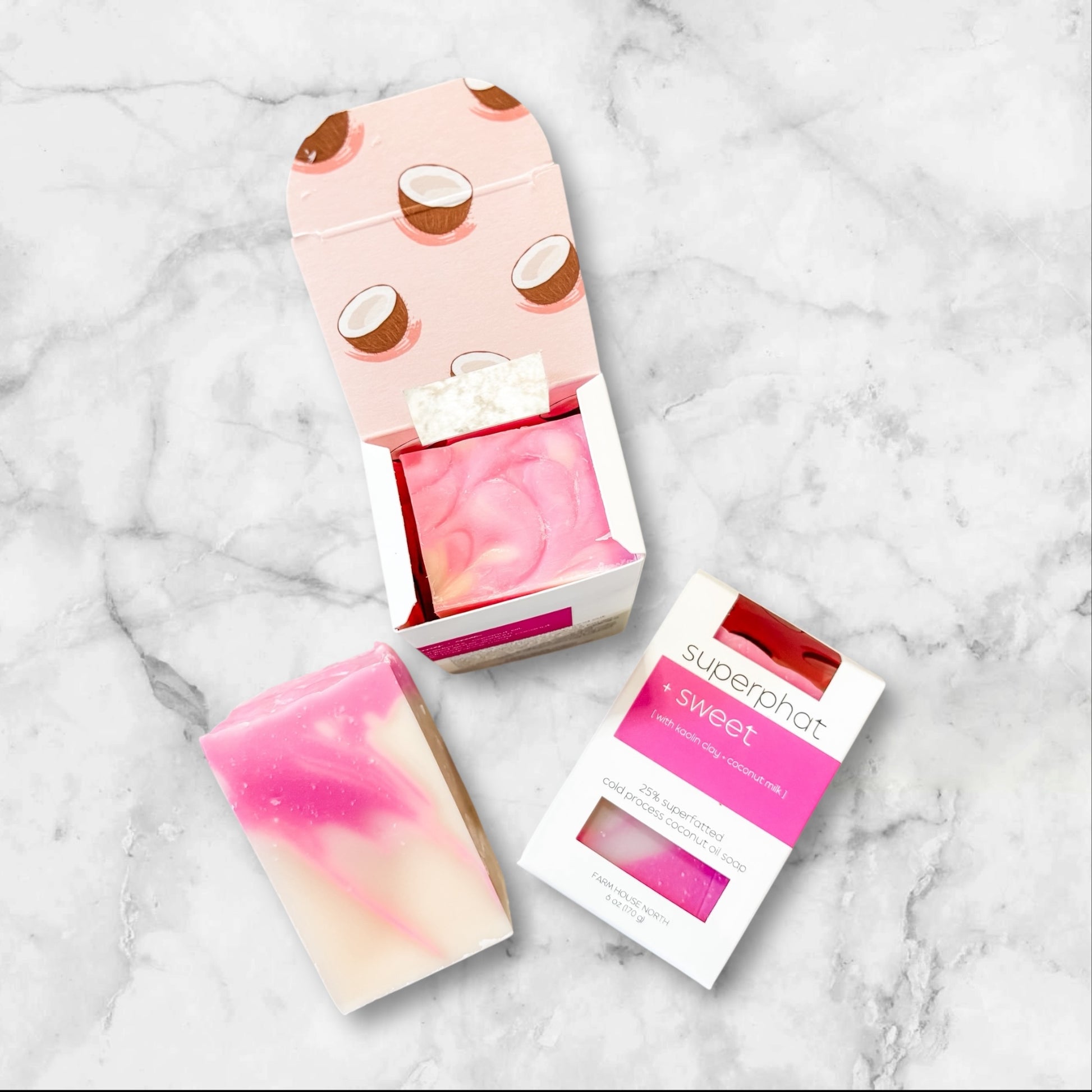 Superphat + Sweet: Sweet berries + Cream scent with added kaolin clay + coconut milk