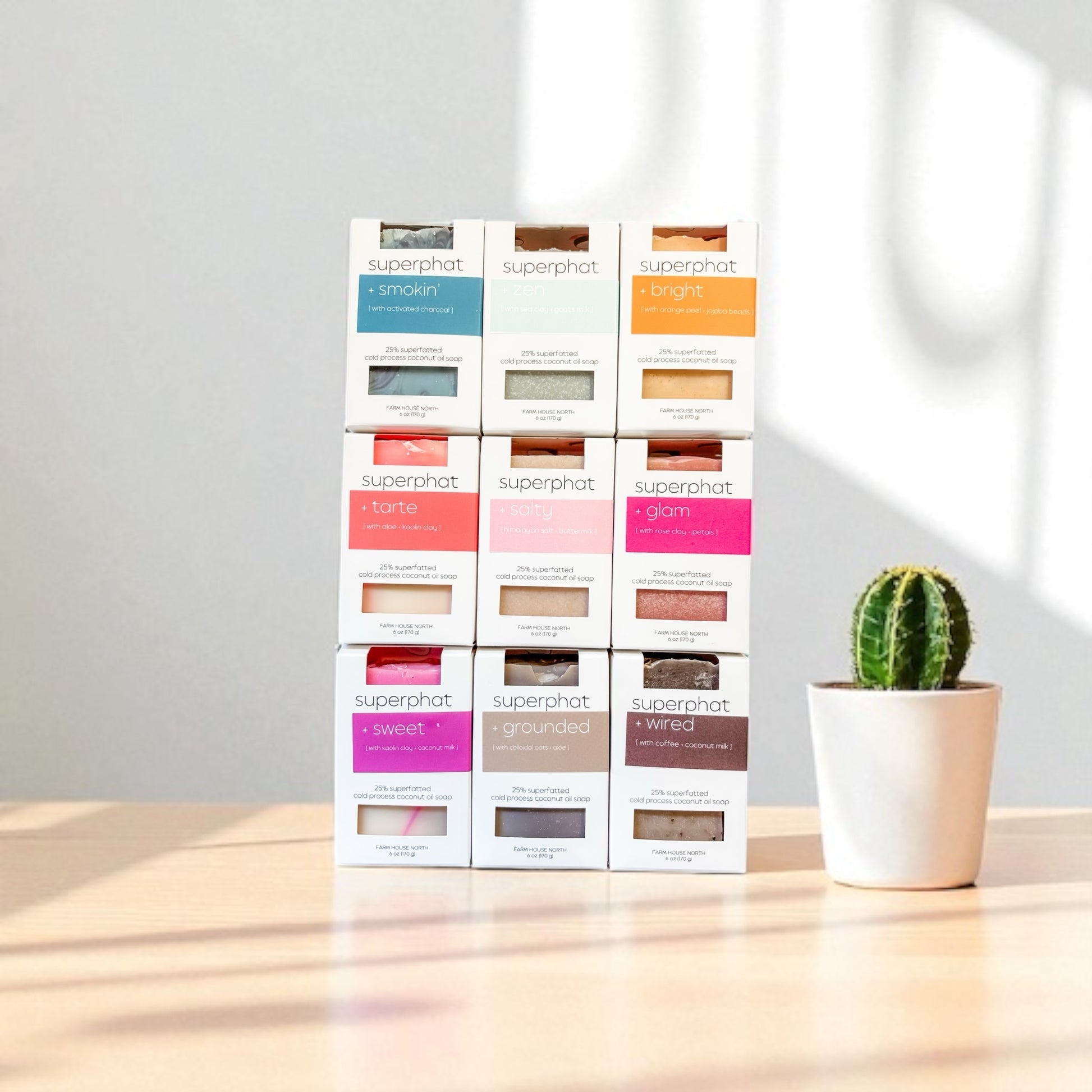 Superphat + Smokin: Added activated charcoal in an amazing woody Palo Santo scent.