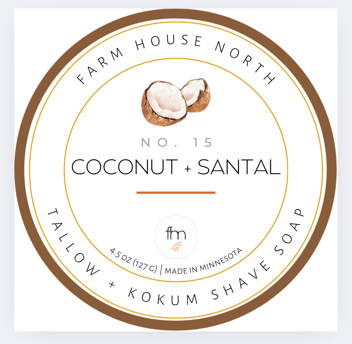 Coconut + Santal- Kick off those sweet summer vibes with coconut + Santal! A long time customer favorite in the EDP category is now a shave soap! This luxe classic combination of woody notes and and coconut gives this the upscale tropical feel that customers keep coming back to. Notes include benzoin, coconut, coconut milk, sandalwood, cedar, tonka bean and amyris.